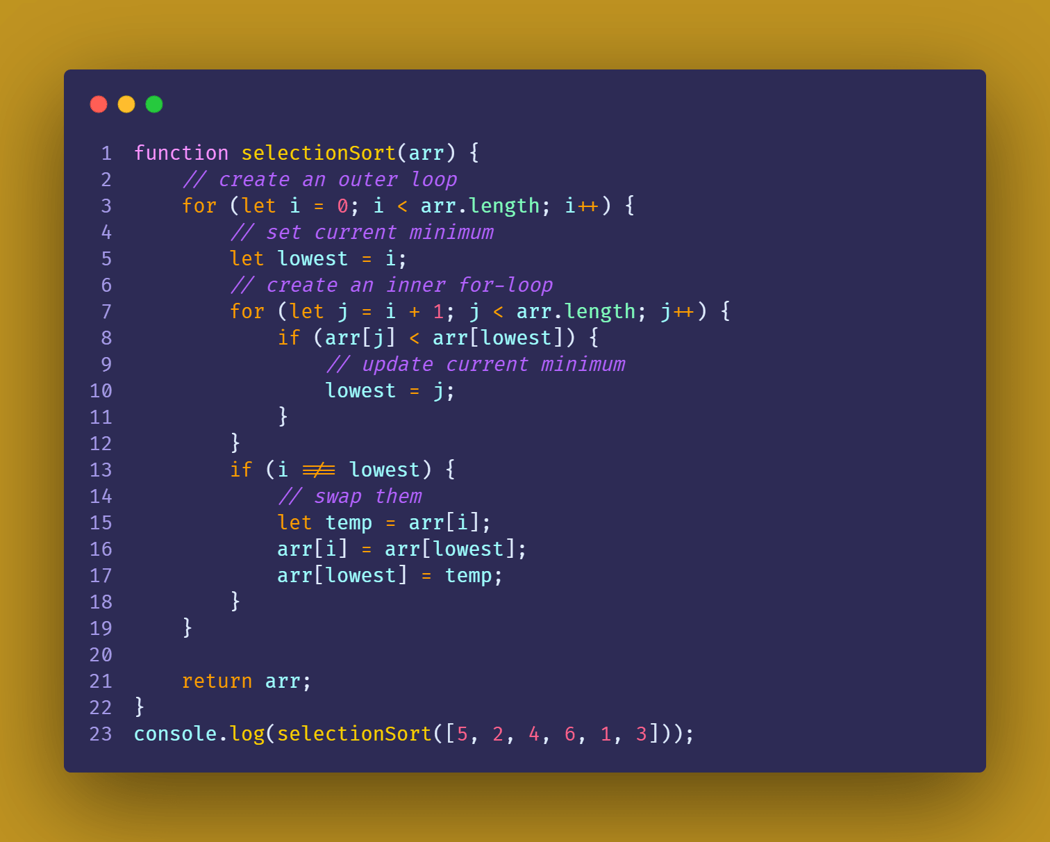 ৩. ইনার লুপের ভিতরে আমরা কম্পেয়ার করি, কারেন্ট ভ্যালু আমাদের লয়েস্ট ভ্যালু থেকে ছোট কিনা, যদি ছোট হয় তবে আমরা কারেন্ট লয়েস্ট ভ্যালু আপডেট করি।