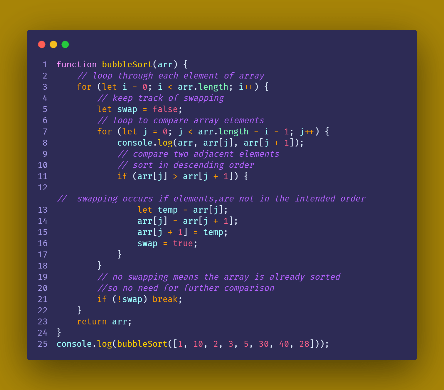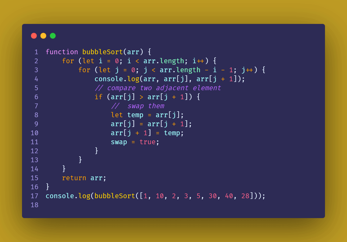 Bubble Sort Code in JavaScript (move the largest element to the end)